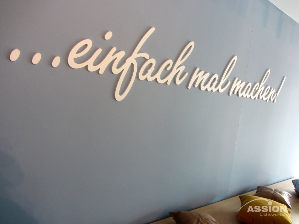 Wir fertigen unbeleuchtete Einzelbuchstaben aus einer Vielzahl wetterfester Materialien, je nach gewünschtem Stil und Budget. Besonders beliebt sind Acrylglas für eine edle Hochglanz-Optik, Aluminiumverbund (Dibond) für moderne Metall-Looks oder robuster Edelstahl für zeitlose Eleganz. Für großformatige Logos im Innenbereich nutzen wir oft leichten PVC-Hartschaum, der sich in fast jeder Wunschfarbe lackieren lässt.