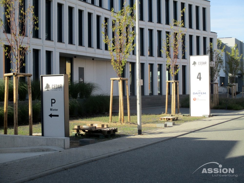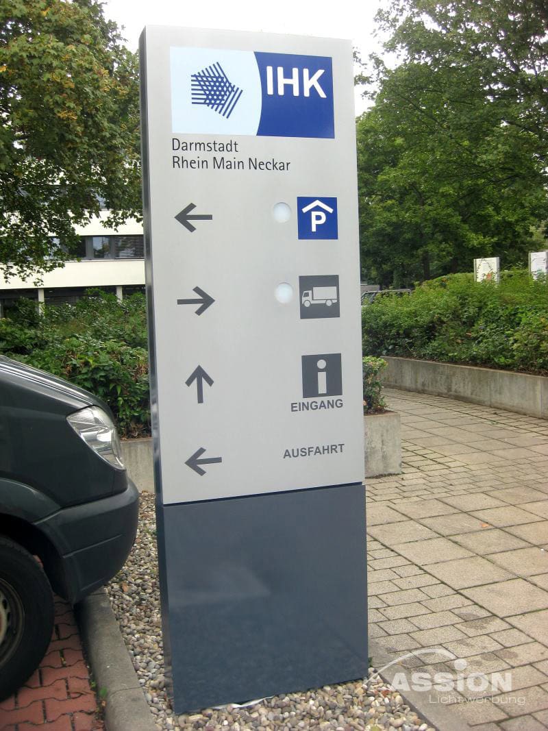 Jeder Pylon wird nach Ihren Vorstellungen gestaltet und in Form, Größe und Farbgebung an Ihre Corporate Identity angepasst.