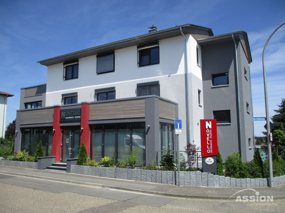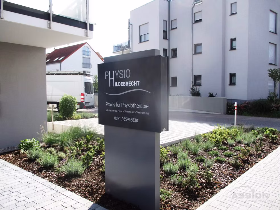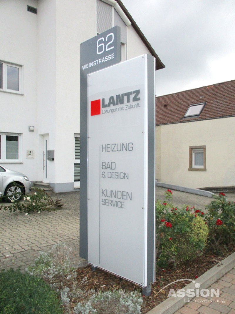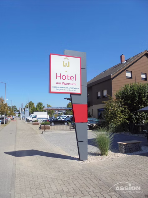 Ein Werbepylon fungiert als weithin sichtbarer Wegweiser direkt an der Grundstücksgrenze oder Zufahrt. Während Fassadenwerbung oft erst spät wahrgenommen wird, markiert eine Stele Ihren Standort bereits aus großer Distanz für den fließenden Verkehr. Er bietet zudem beidseitige Werbefläche und wirkt durch seine freistehende, oft monumentale Bauweise besonders hochwertig und repräsentativ für Ihr Unternehmen.